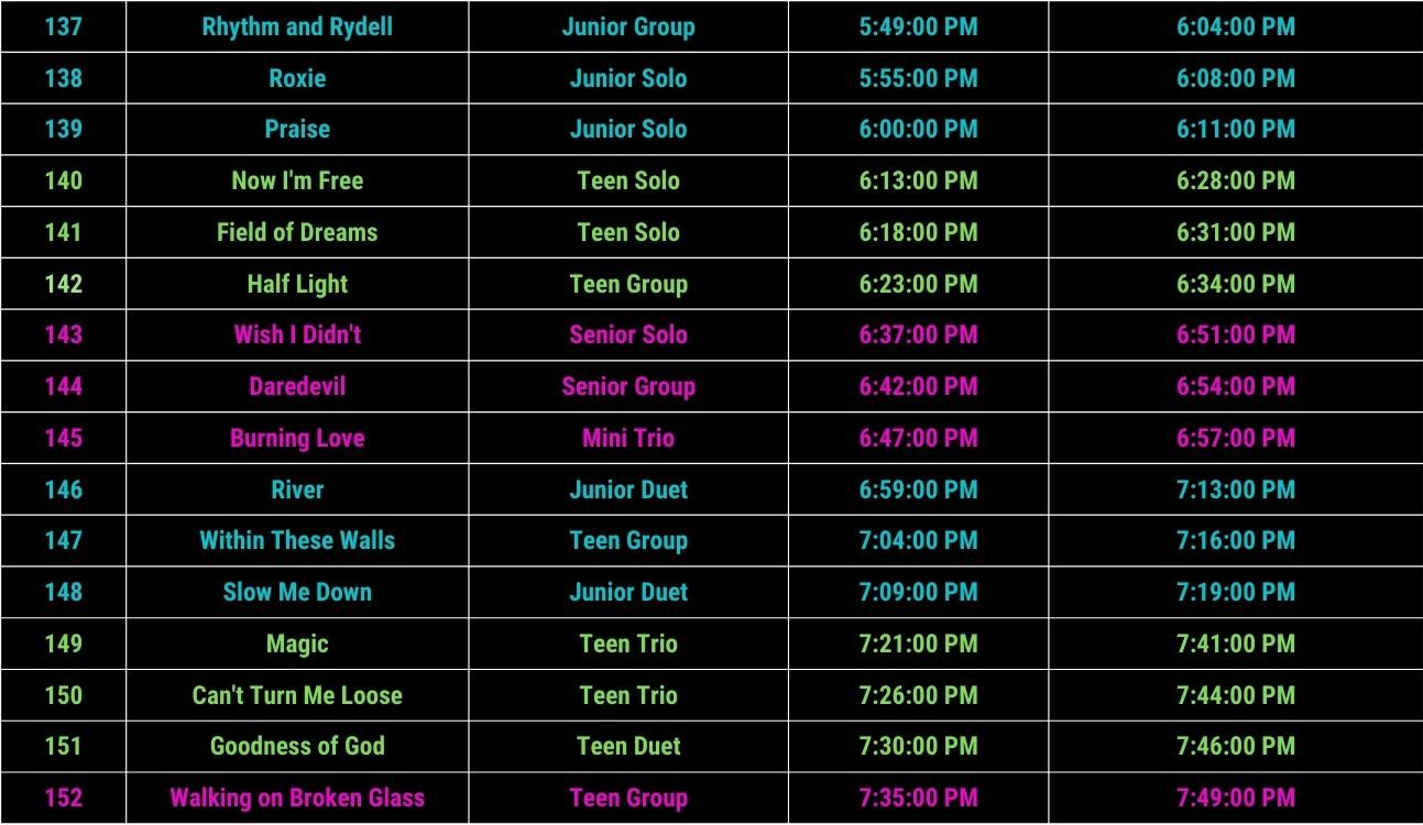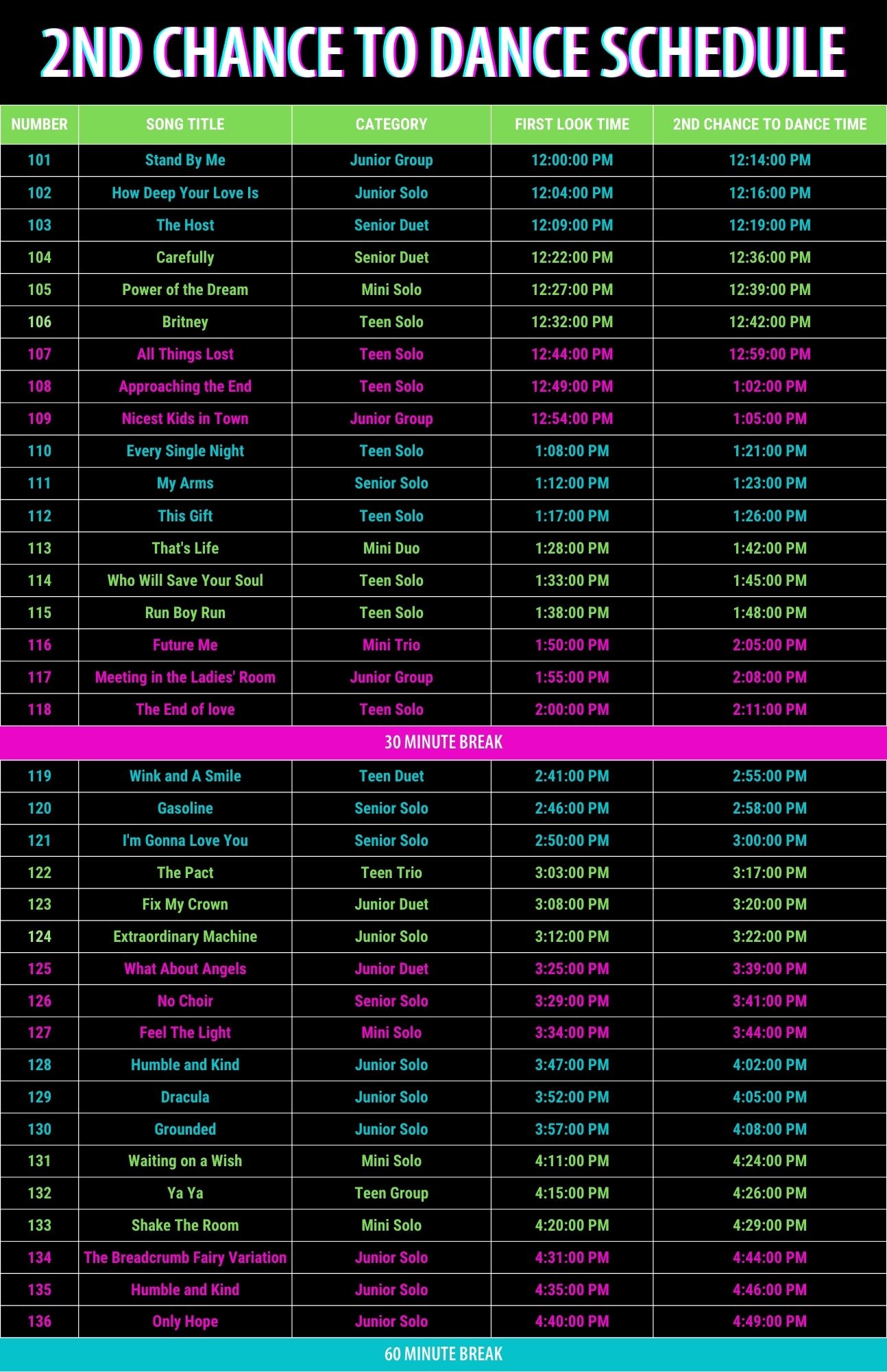 2nd Chance to Dance Schedule